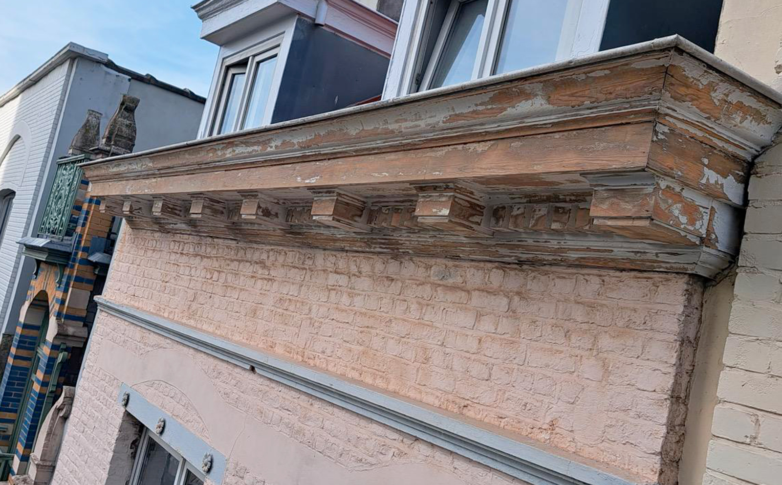À Bruxelles et Charleroi, les corniches subissent particulièrement les effets du gel, de la pluie et de la pollution. Une corniche endommagée favorise la pénétration de l’humidité, provoque des éclats d’enduit et peut entraîner des infiltrations sur la façade ou sous la toiture.