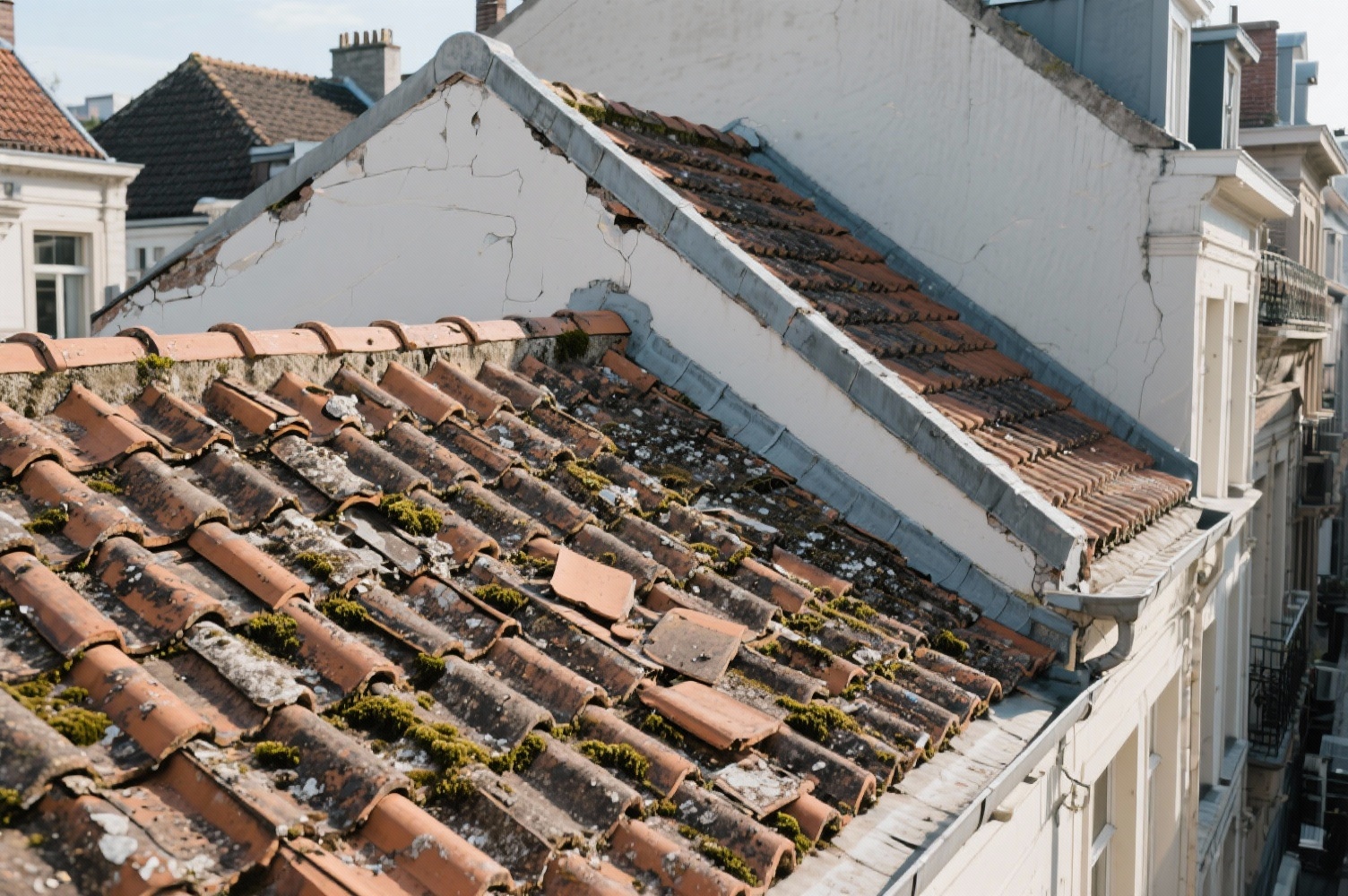 Avec les années, le climat belge — alternant humidité, gel et précipitations fréquentes — met les toitures à rude épreuve. À Bruxelles et Charleroi, les variations de température, la pollution et la mousse accélèrent l’usure des matériaux et provoquent des infiltrations, des fuites et une perte d’isolation.